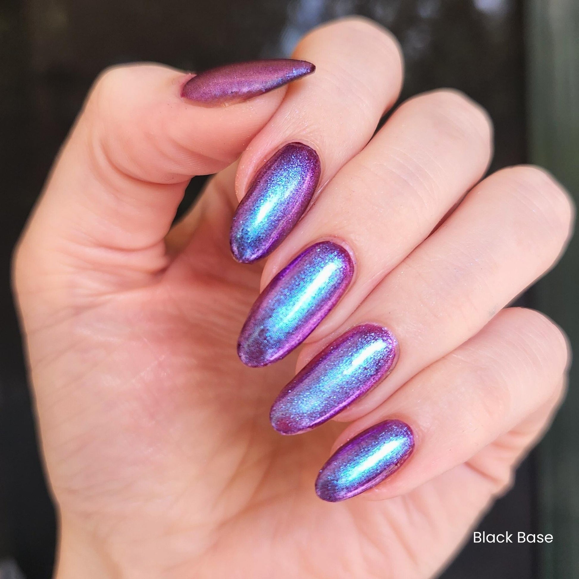 This polish is all about versatility: wear it sheer with one coat, or build it up to a full, opaque glow in 3-4. Want to take it up a notch? Layer over other colours to reveal dramatic, shifting effects that change with the light.