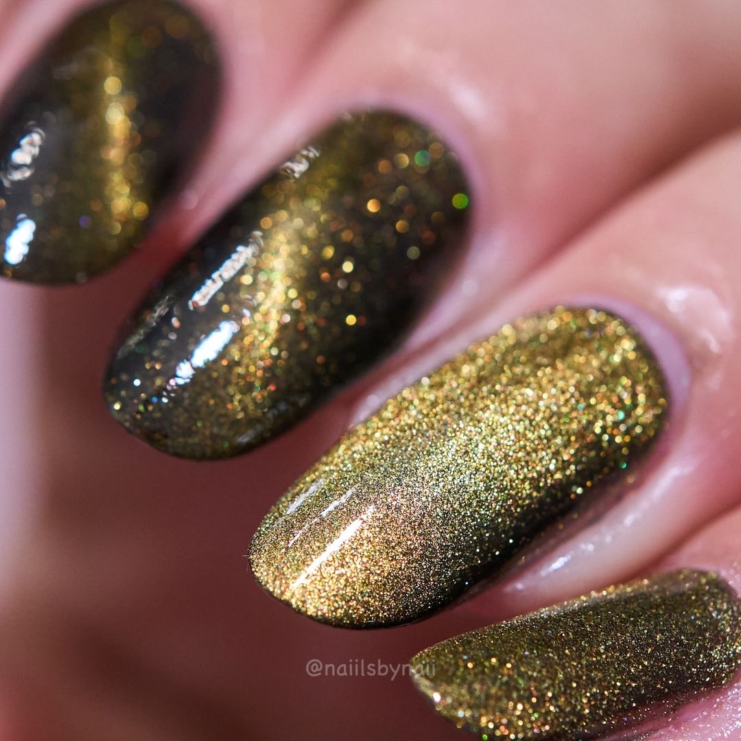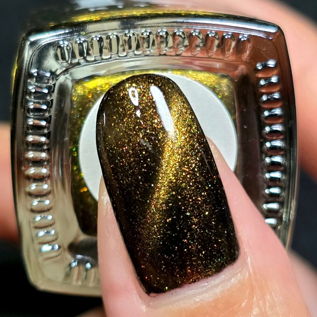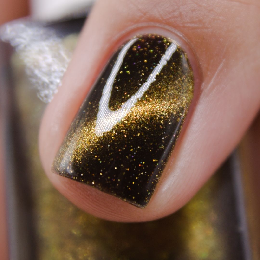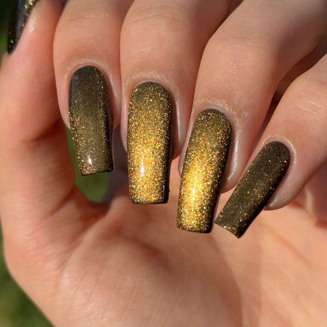 Mitey Iconic is a golden magnetic with a blackened base and subtle gold holo glitters.