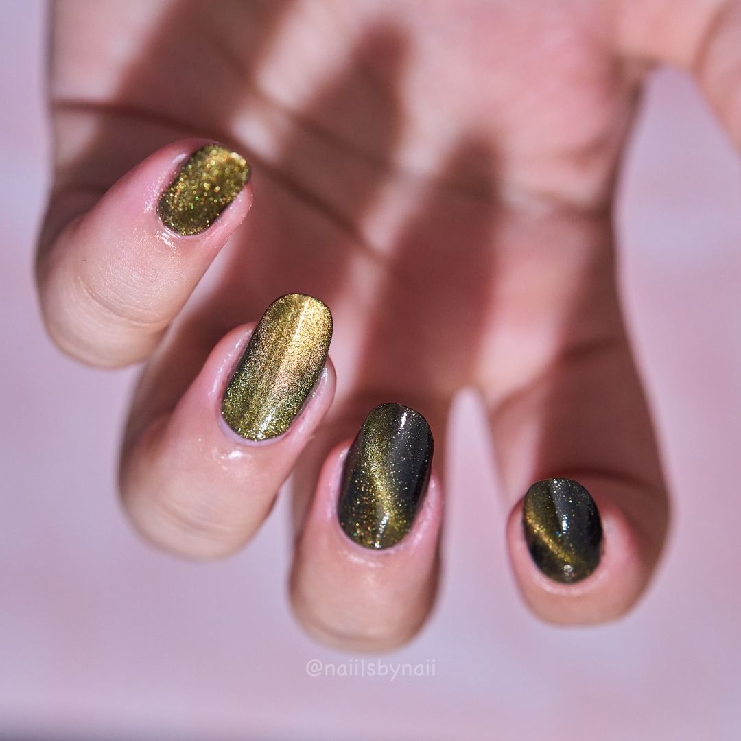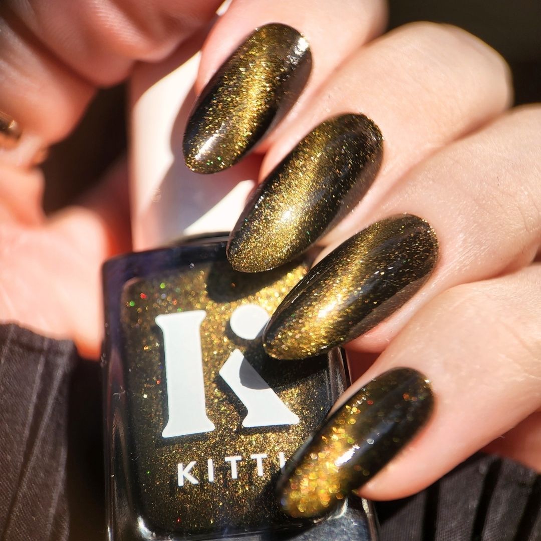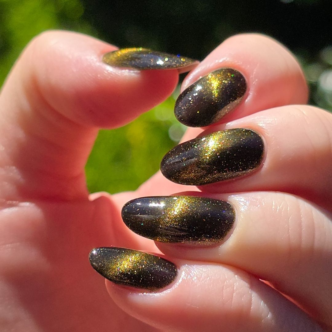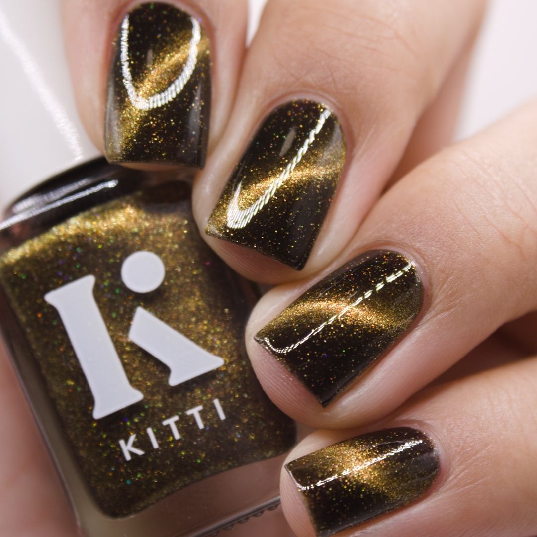 Mitey Iconic is a golden magnetic with a blackened base and subtle gold holo glitters.