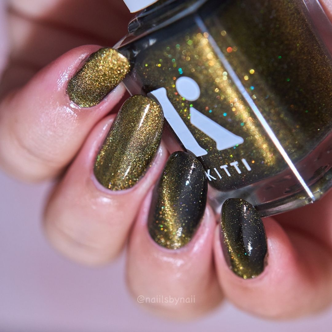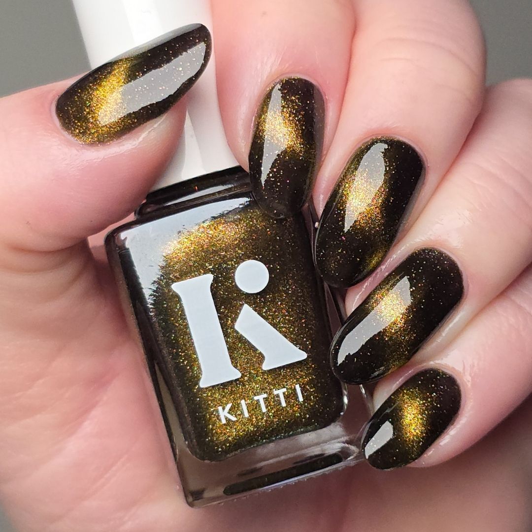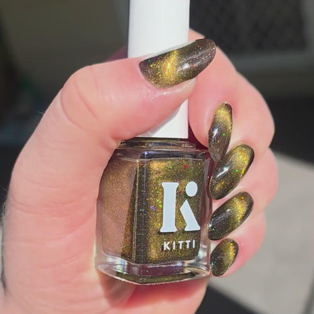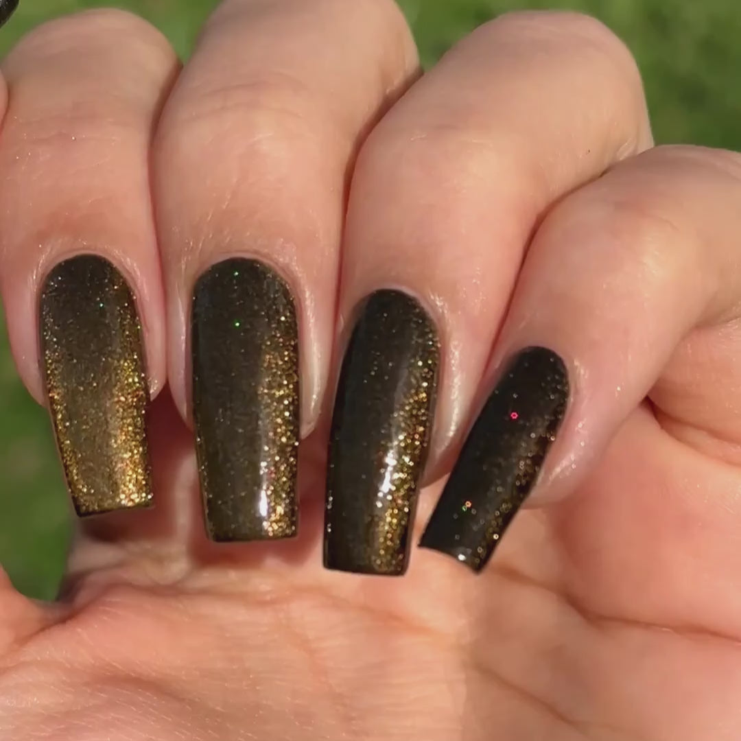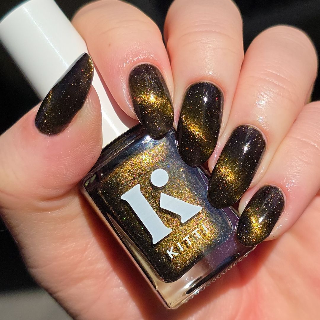 Mitey Iconic is a golden magnetic with a blackened base and subtle gold holo glitters.