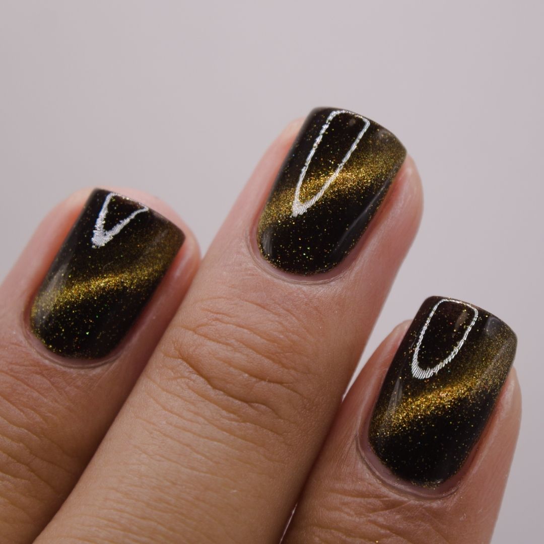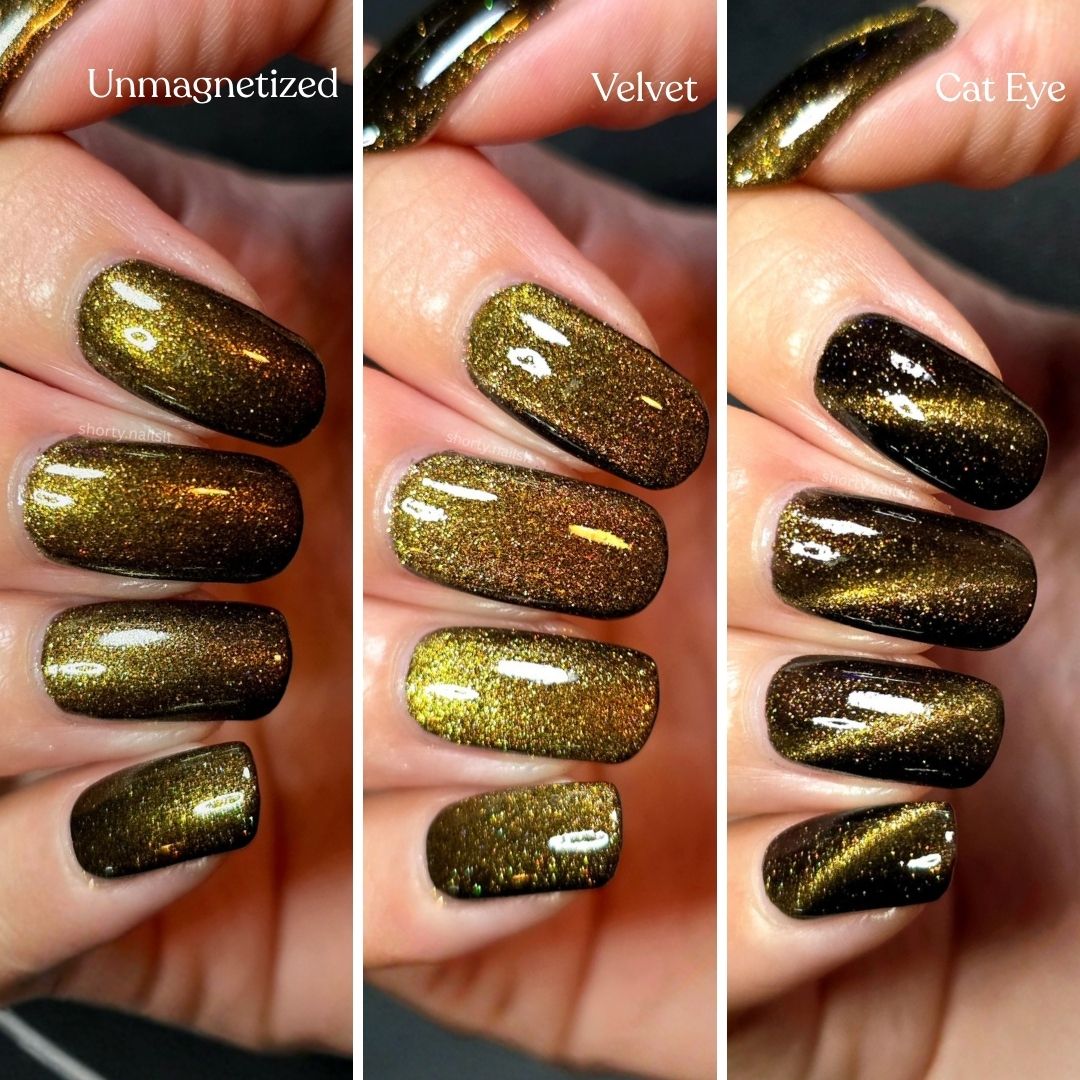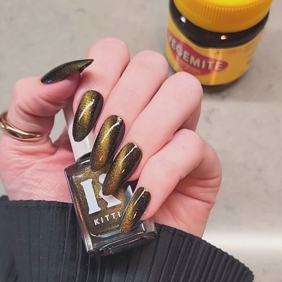 Please Note: Magnetic polishes have metal shavings that shimmer on their own but require a magnet to attract the metallic particles into shape, creating a mesmerising, magical finish on your nails! For best results, see the application instructions.
