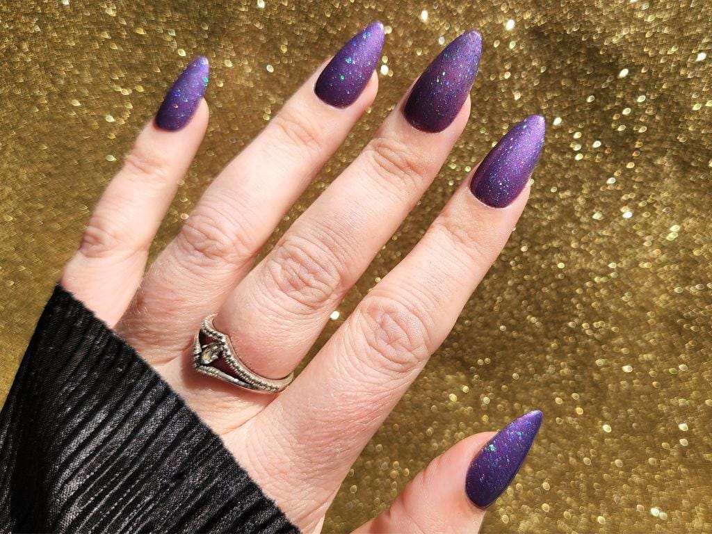 Unhinged After Dark is your wild side in a bottle. This deep purple buildable jelly, laced with turquoise holographic glitter, is as bold and unpredictable as the night itself.